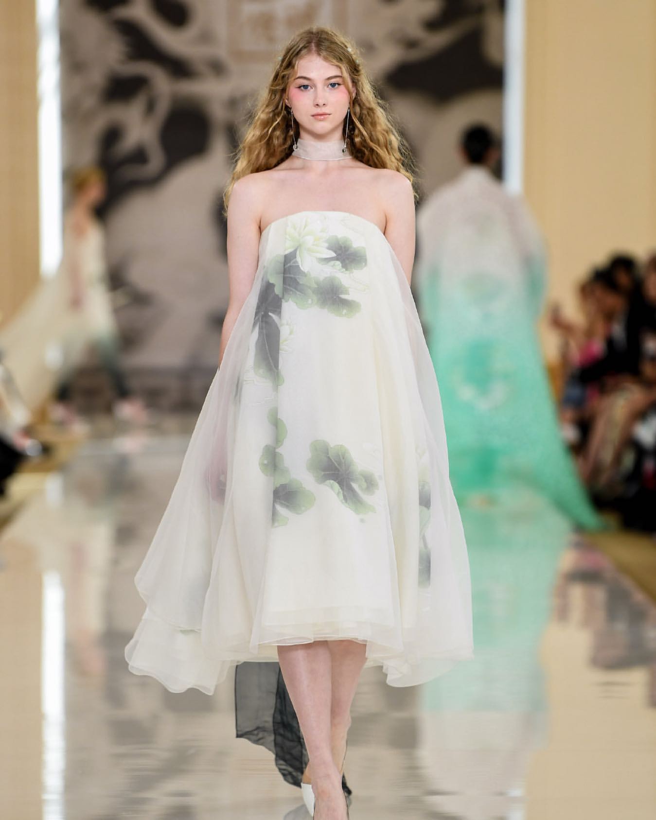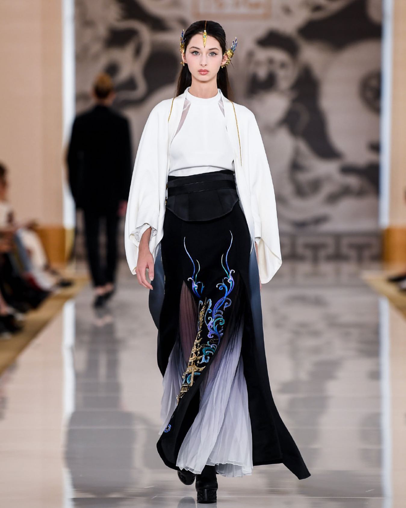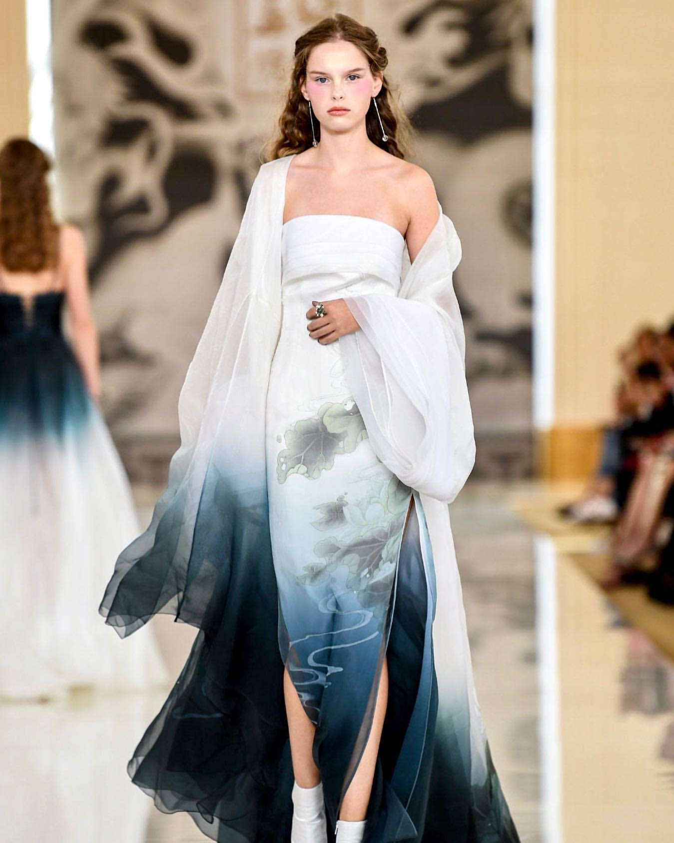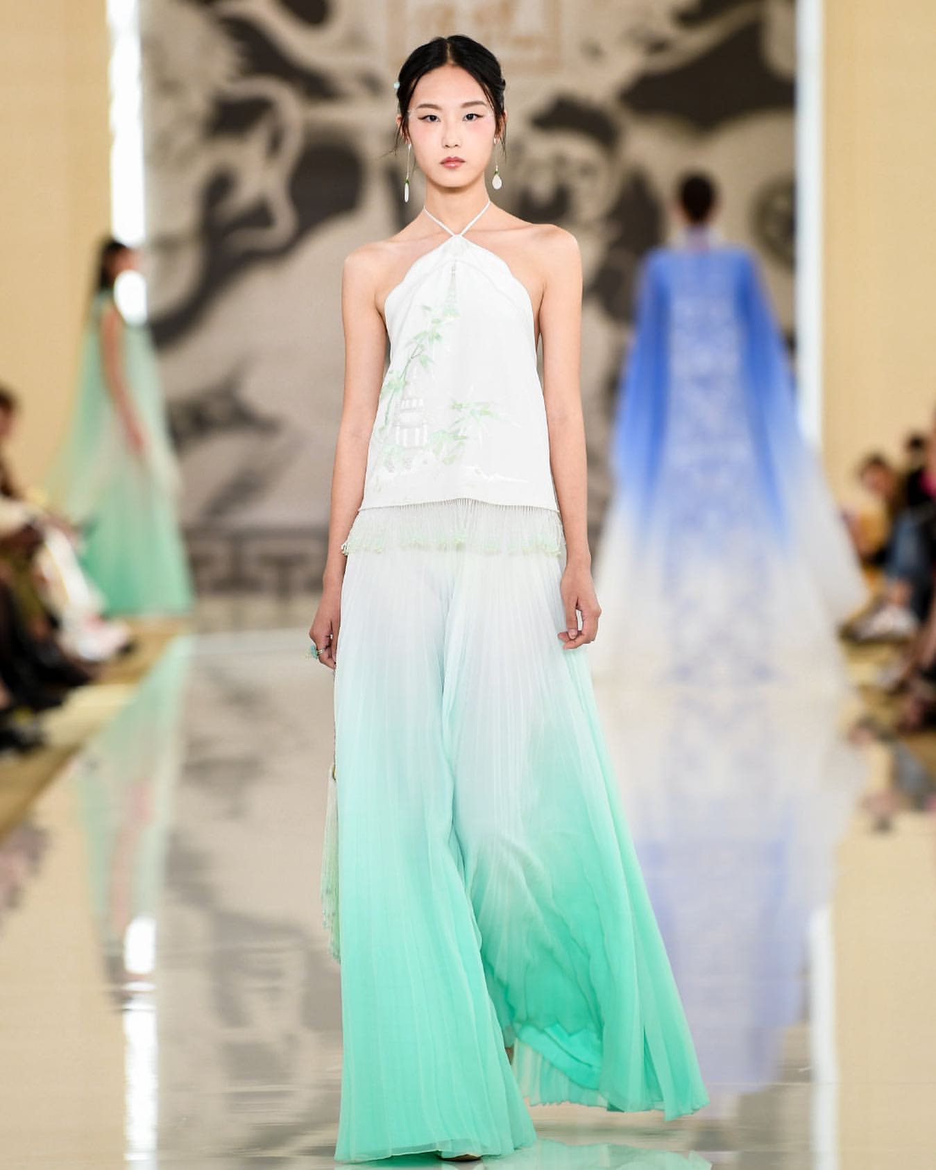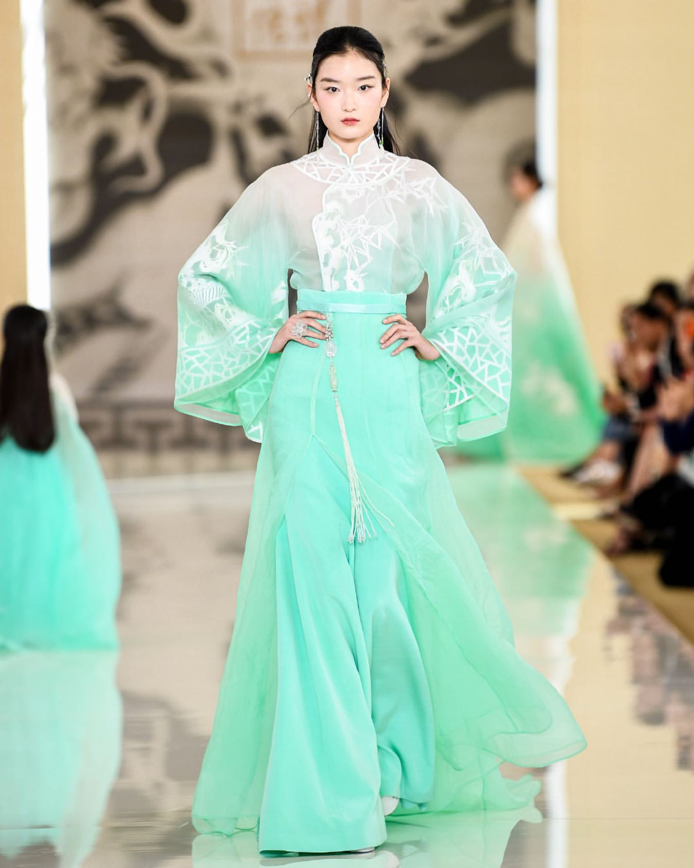 On the Small Palace podium, the traditional Chinese legend was reproduced. Spectators were led to discover the beauty and glamor of Chinese clothing mixed with Chinese poetry. Ms. Xiong Ying, the founder of the brand, has achieved remarkable results thanks to her passion and attachment to Chinese culture.