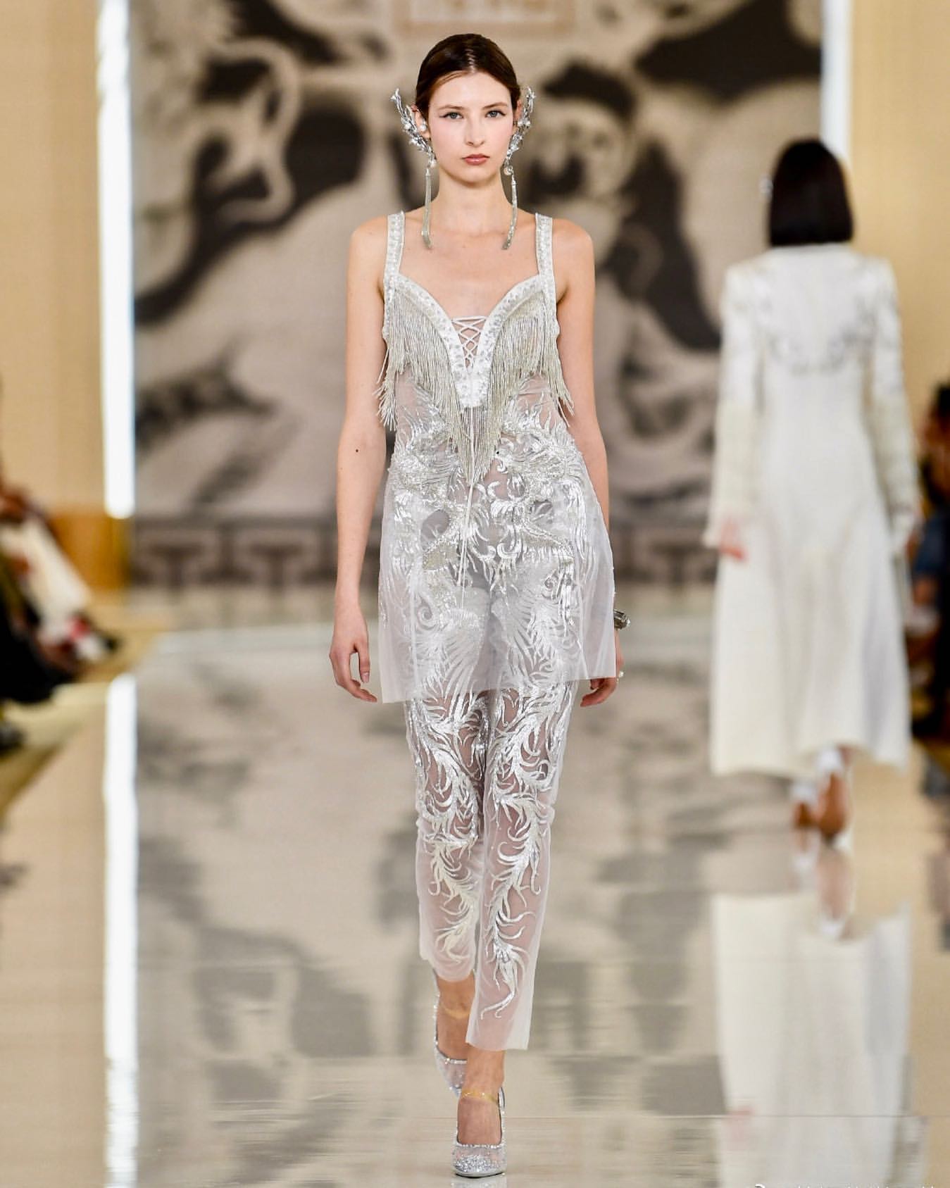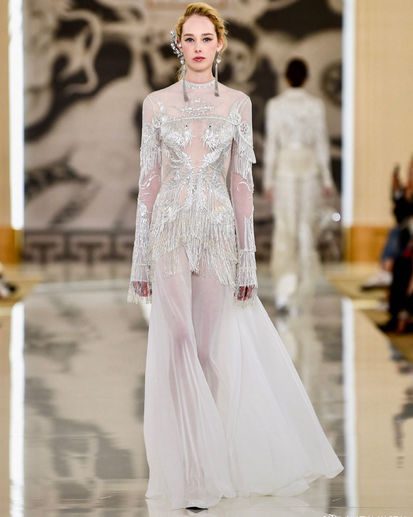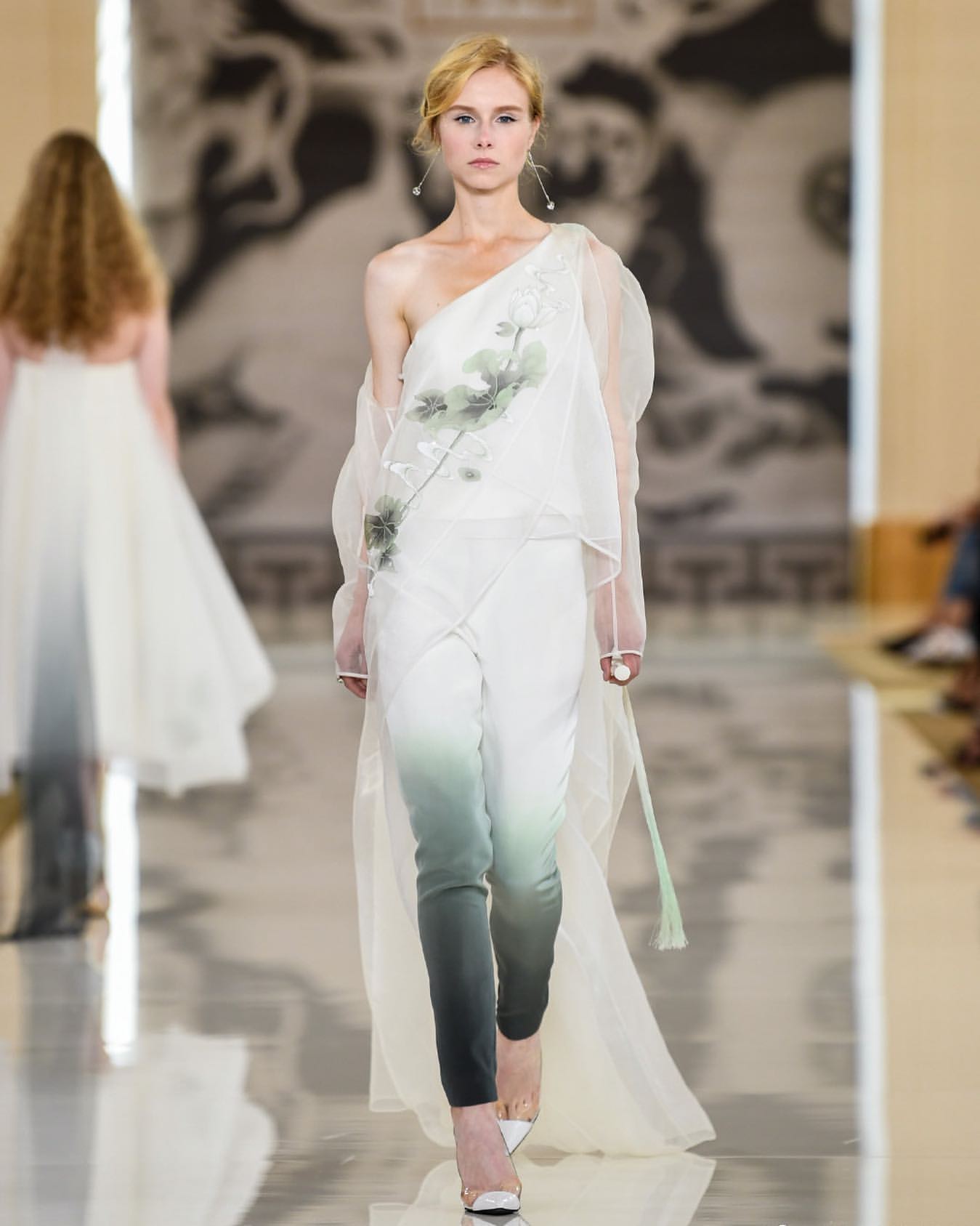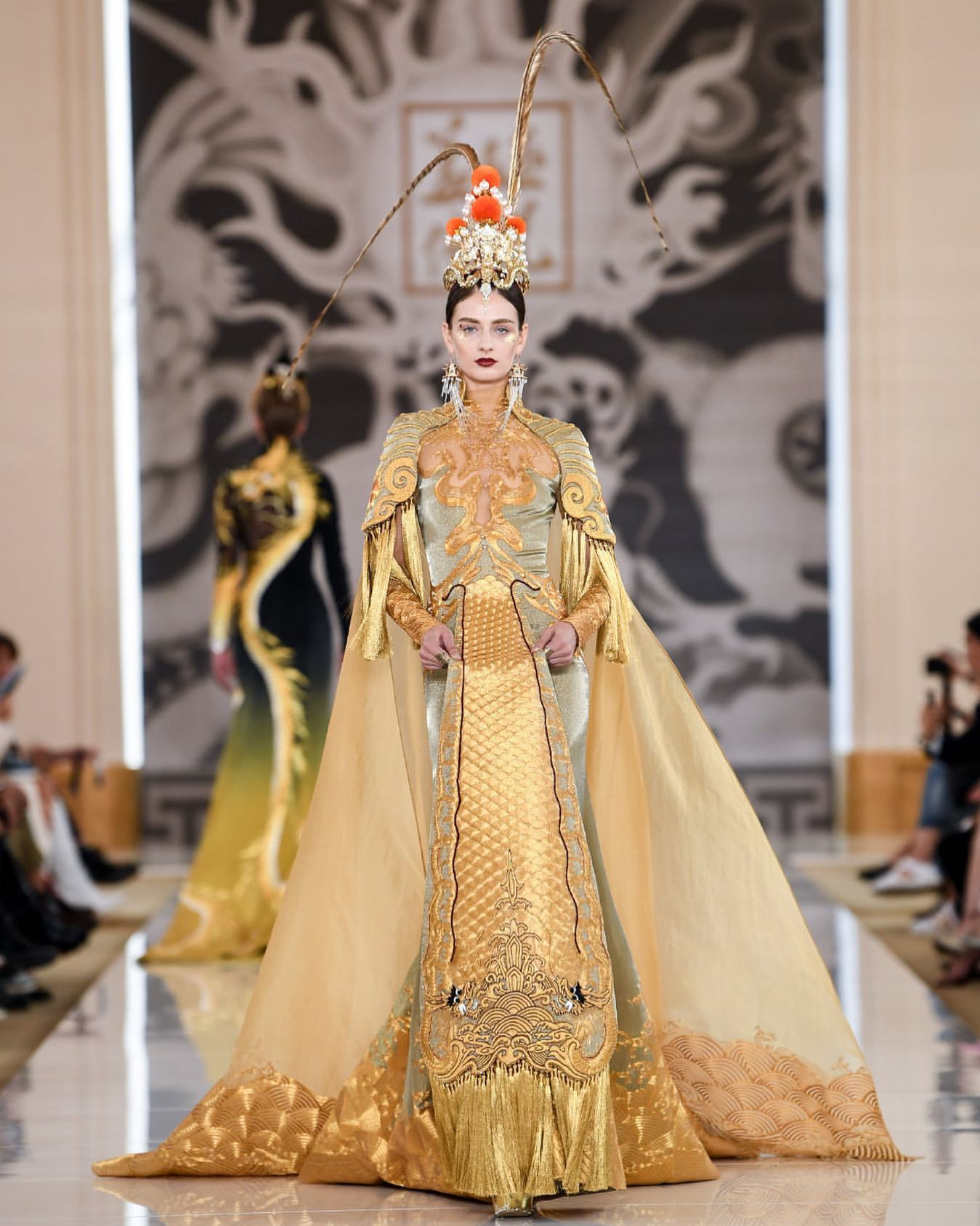 The second act called “Just Like the Dragon” mingled the concept of high fashion clothing and a high-quality ready-to-wear. This scene has unveiled a fairy couture parade, fusing Chinese culture with a contemporary style of dress.