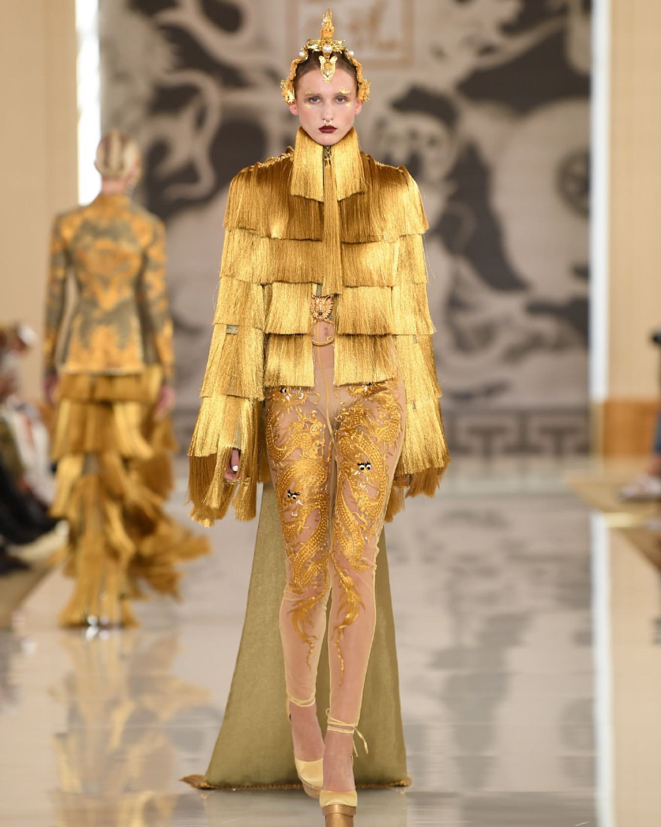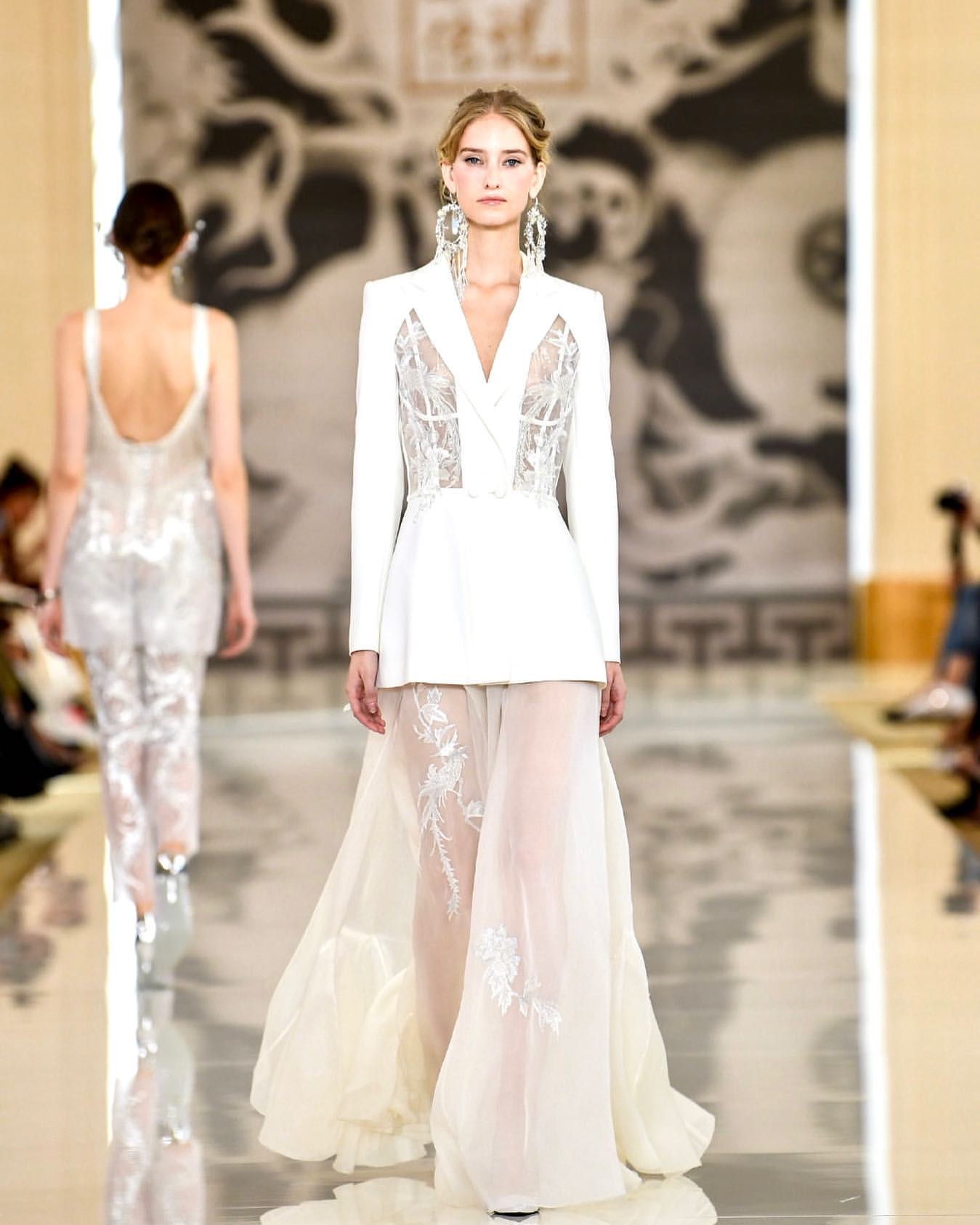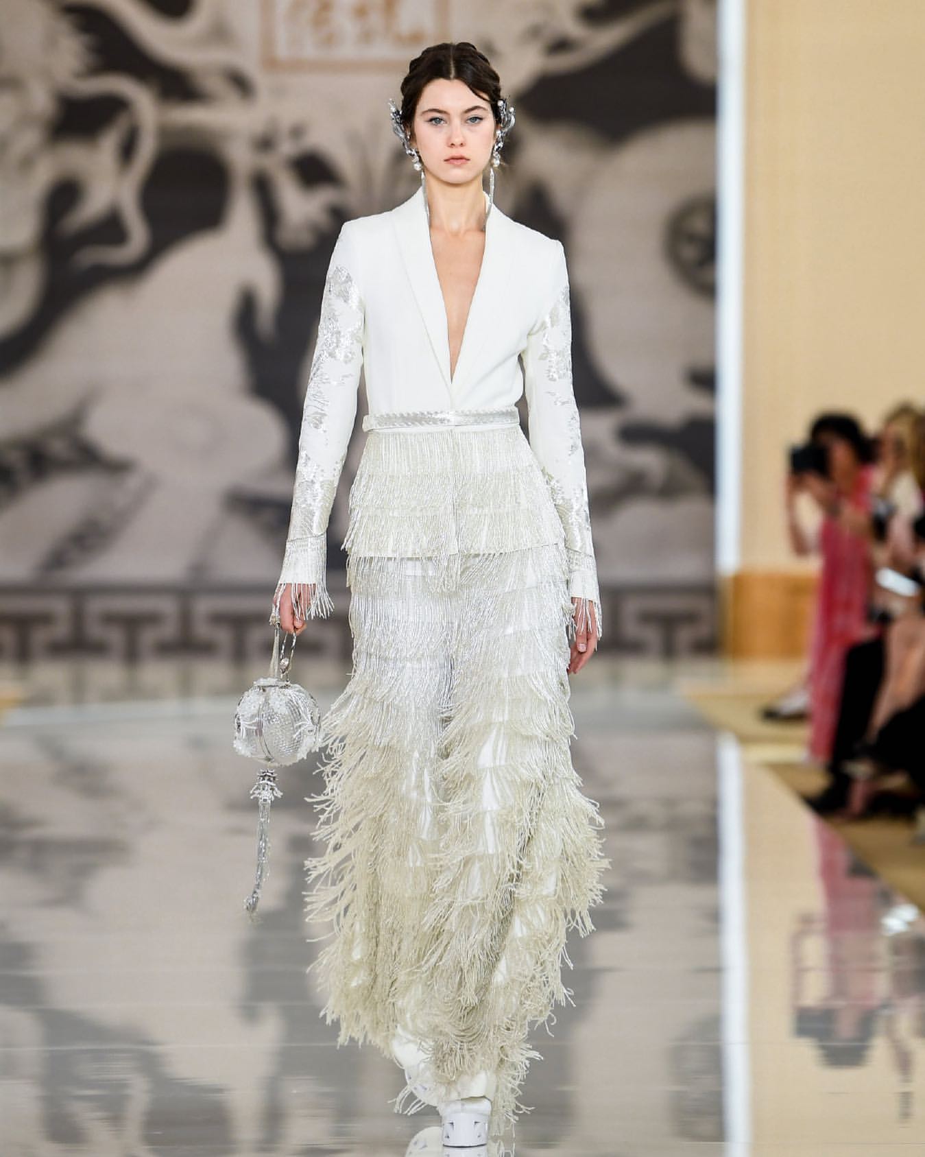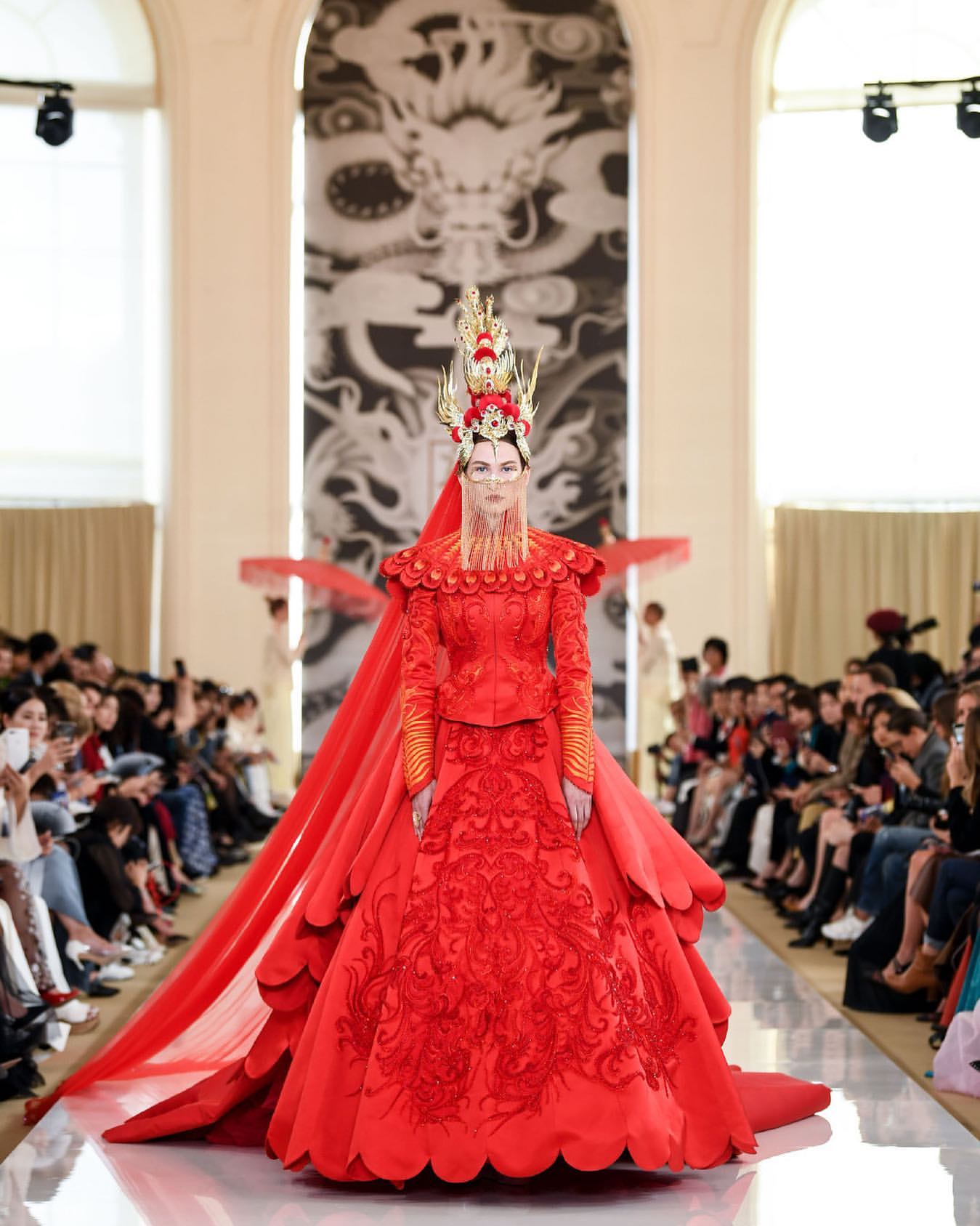 The second act called “Just Like the Dragon” mingled the concept of high fashion clothing and a high-quality ready-to-wear. This scene has unveiled a fairy couture parade, fusing Chinese culture with a contemporary style of dress.