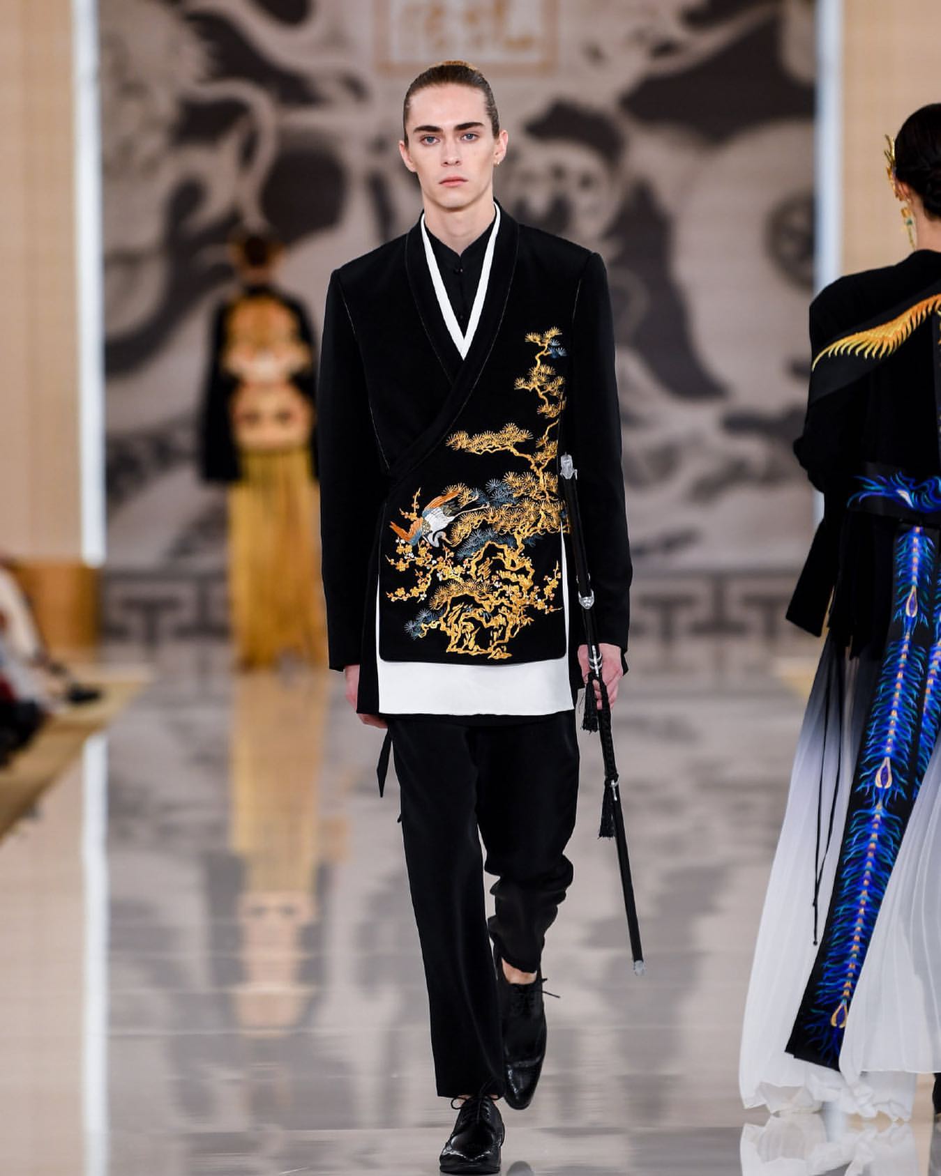 This year, the HEAVEN GAIA 2020 show for the Spring-Summer collection was divided into two parts. The first part, titled “Flying Like the Wild Goose,” was a quintessence of China, an opera on the Parisian stage. This representation was an original and prodigious icon of the Chinese fashion industry. The brand ambassador GAIA, a famous Chinese singer, Huo Zun, was wearing a garment from the new men’s collection spreading the charm and oriental elegance on the world fashion scene.