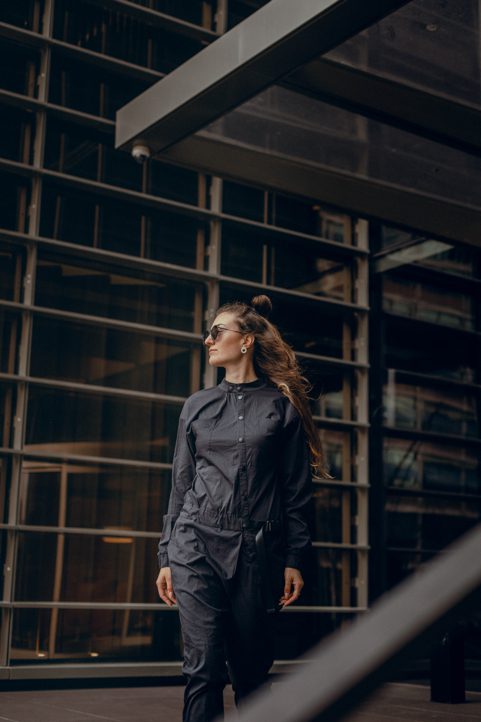 A popular Moscow brand with a penchant for Japanese aesthetics, WHITE CROW was created in 2013 by Anton Maetny and Natalya Guschina. The designer duo finds ideas and inspiration for their collections in traveling, architecture, art, and any creative objects they meet. Their silhouettes and cuts often resemble origami and architectural forms.